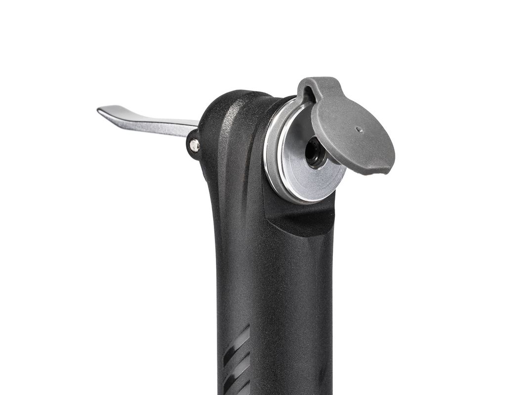 The most compact and lightweight version in the DA pump series easily fits in your jersey pocket. Dual-Action (DA) doubles volume with each stroke and inflates tires to 120 psi / 8 bar. Integrated dust cap keeps pump head clean and thumb lock lever insures air-tight seal.