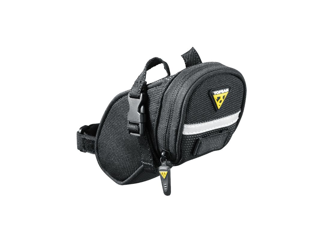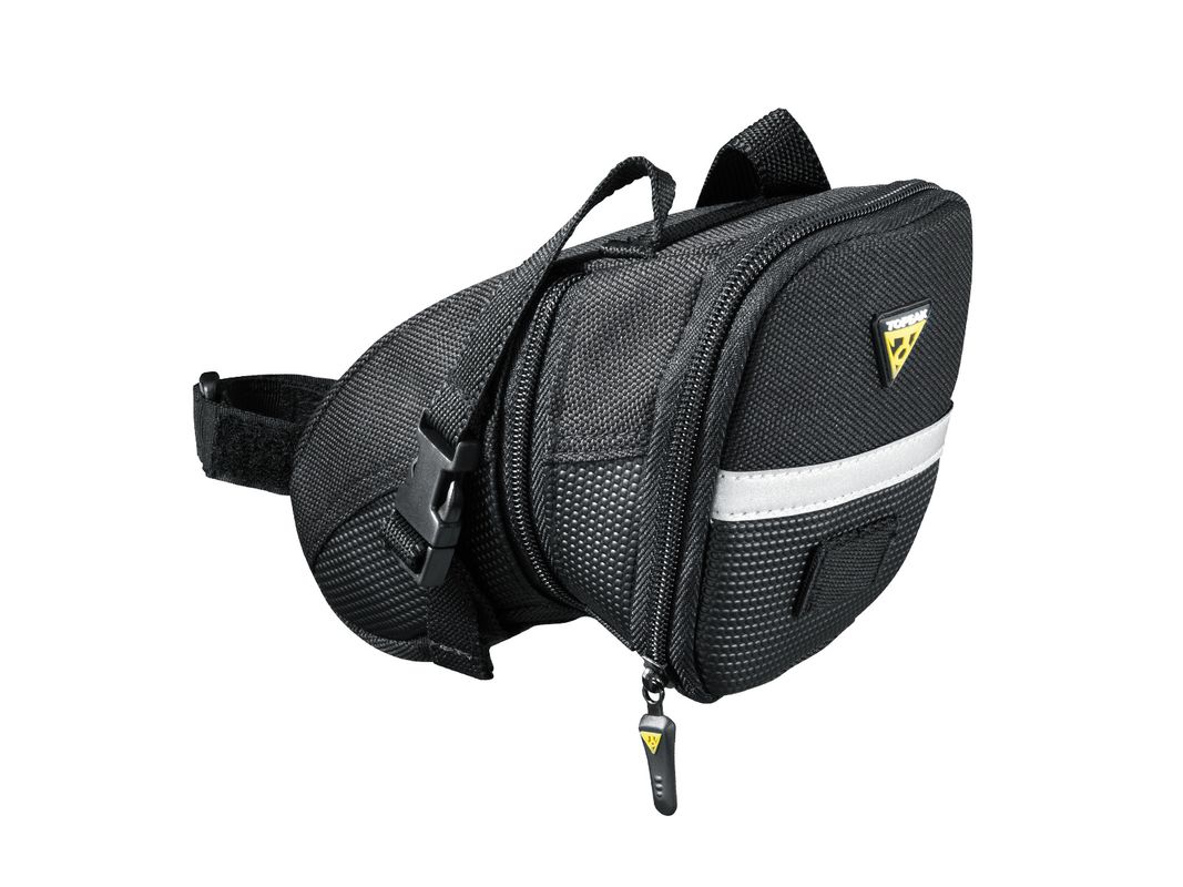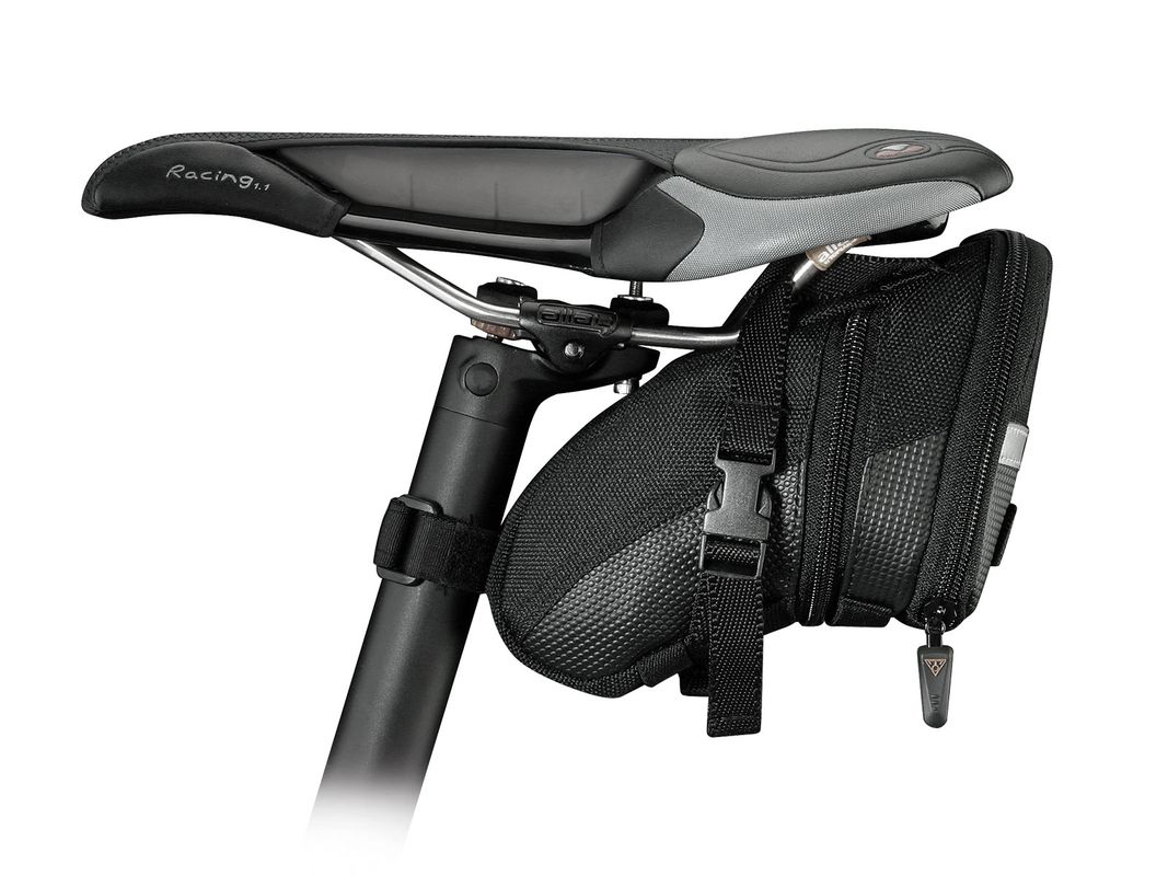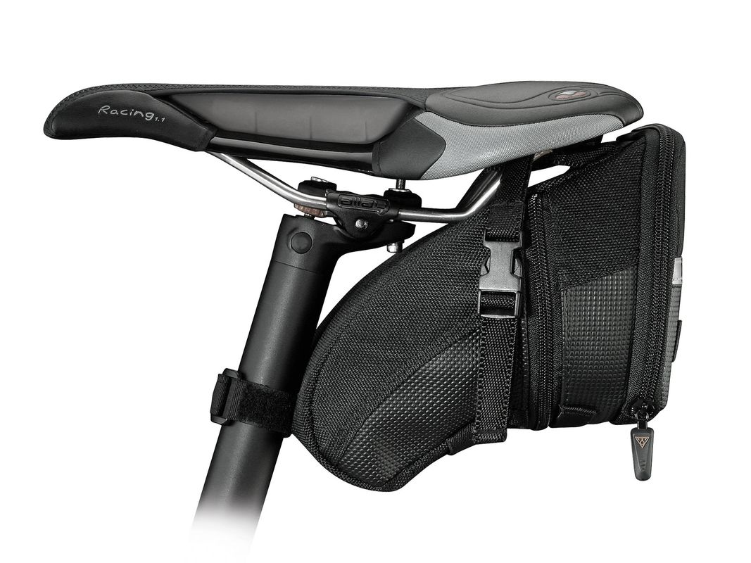 Aerodynamic seat bag holds tubes, tools and other repair items. Mounts with our innovative Quick Release Buckle system to fit all railed saddles. Four sizes offered to exactly fit rider’s needs.