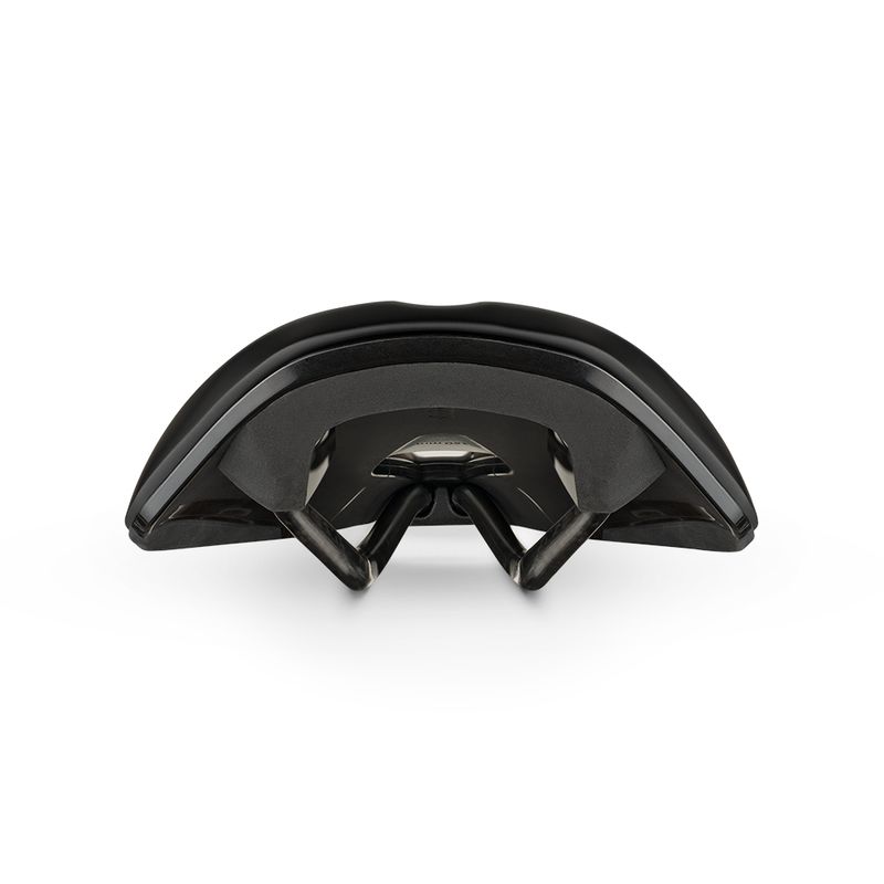 A saddle for endurance cycling, with a short-nosed design and generous ischial support that encourages stability, and extremely stiff carbon rails.