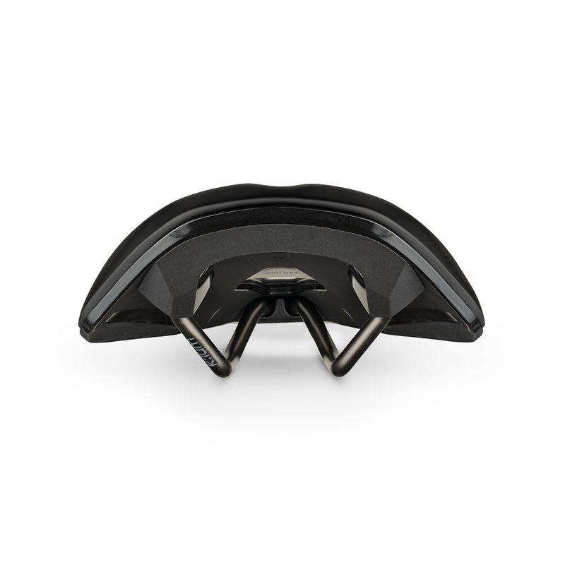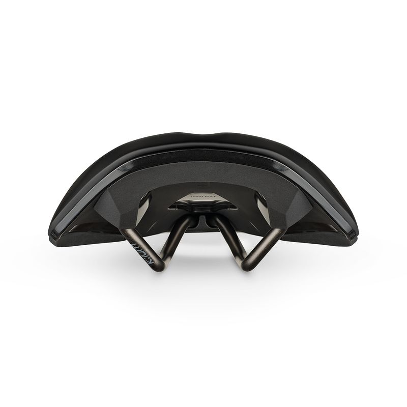 A saddle for endurance cycling, with a ride-compliant carbon-reinforced nylon shell, Kium hollow rails and progressive cushioning with lower compression modulus.