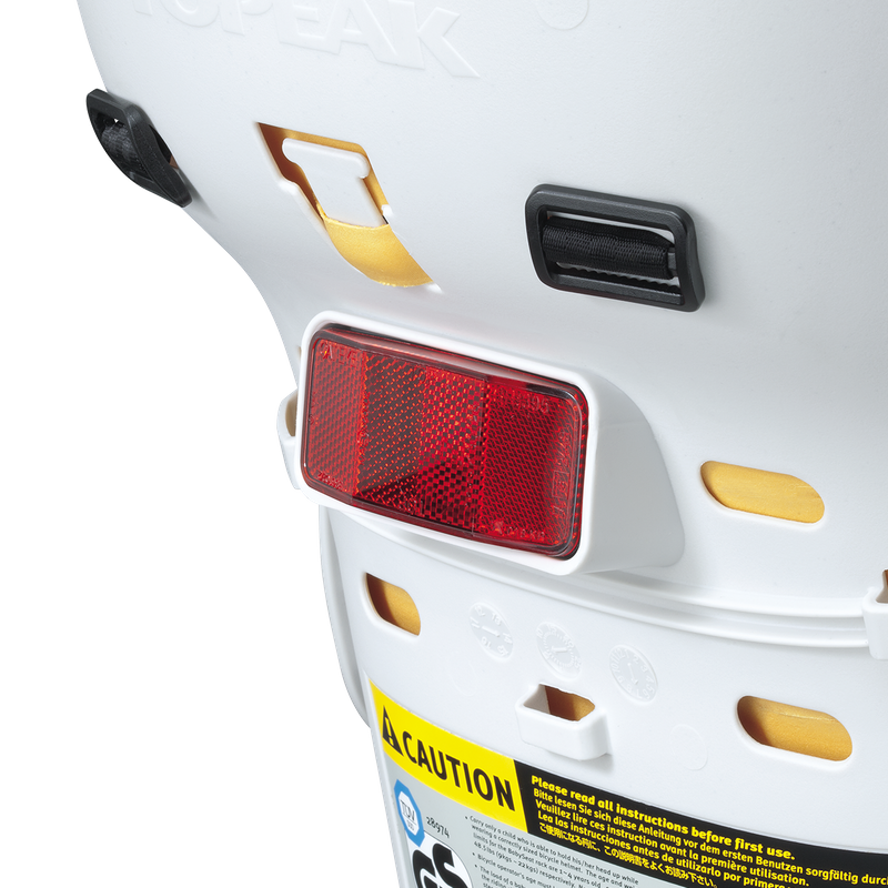 A wrap-around seat structure creates a virtual cocoon of protection and features an updated shoulder harness with a multiple height adjustment system. An innovative suspension system cushions bumps and jolts and the integrated roll bar provides extra head protection and doubles as a carrying handle. Adjustable footrests and straps keep small feet away from spinning wheels. Child seat complies with stringent European, CPSIA and Proposition 65 safety standards. The included heavy-duty disc mount rack features an innovative BabySeat™ attachment that requires no tools to attach and remove seat from rack. Once the seat is removed, the exposed QuickTrack® system is compatible with all Topeak MTX TrunkBags and MTX Rear Baskets.