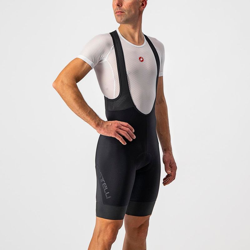 The do-everything bibshort: great in dry conditions, water repellent for light rain and wet roads, reduced seams for comfort, reflective band for visibility. And the tone-on-tone embossed logos give it that tech stealth look.