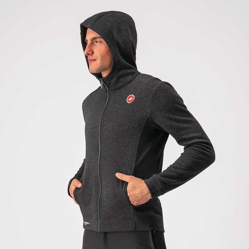 Super cozy wool-blend fleece hoodie with generous lined hood and pockets. Iconic Castelli heritage branding.