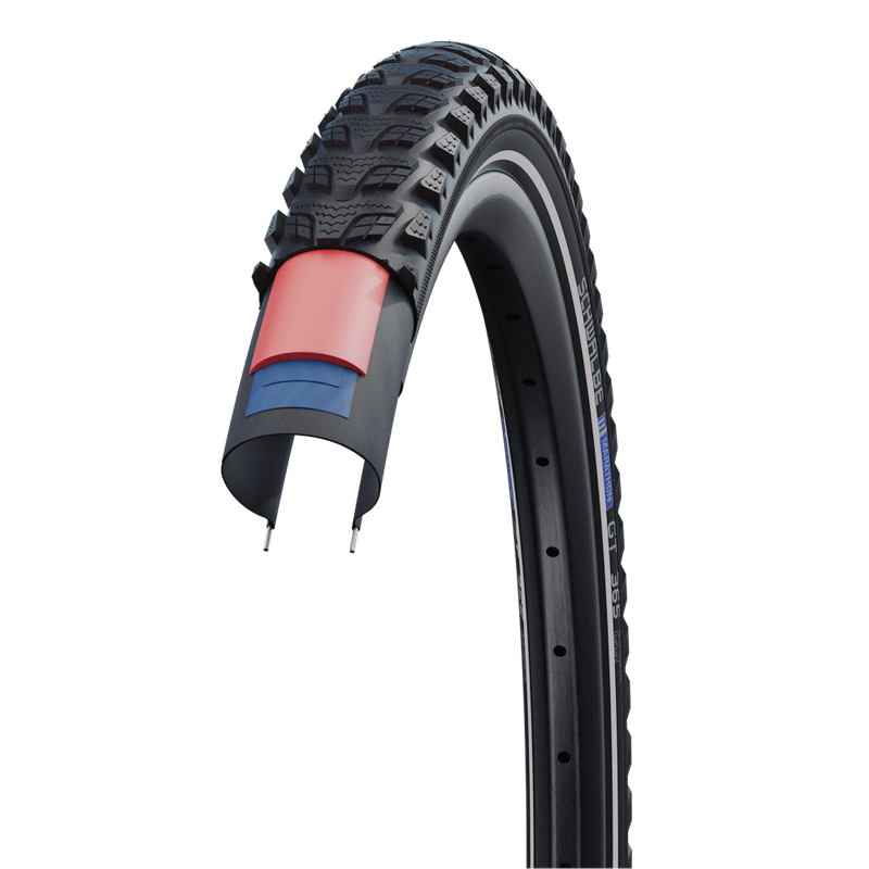 1 TIRE. 4 SEASONS, 365 DAYS NO TIRE CHANGE NECESSARY. The Marathon GT 365 is the first tire which you will ride safely throughout the year in almost every condition. The new lamella tread and the specially developed “FourSeason” compound provide full grip, no matter what time of the year. Of course fitted with DualGuard puncture protection technology for maximum safety.