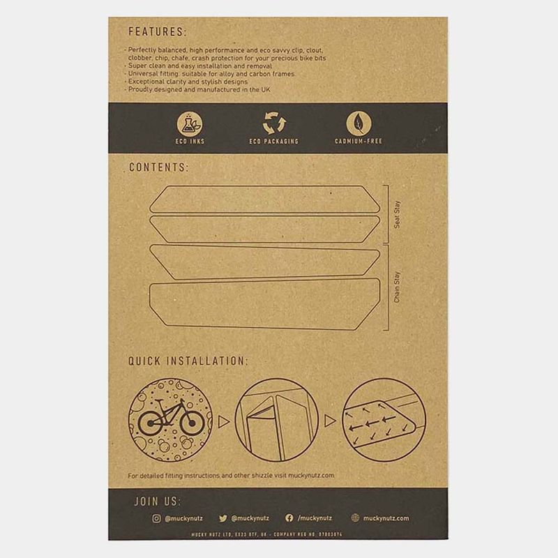 Not just some pretty little lines... Stay Skinz, Contours combines topography with a selection of weird and wonderful place names from around the UK, which we had fun researching and verifying. On a transparent background, it blends perfectly into your bike's natural colour scheme, providing bomb-proof protection for your chain and seat stays.