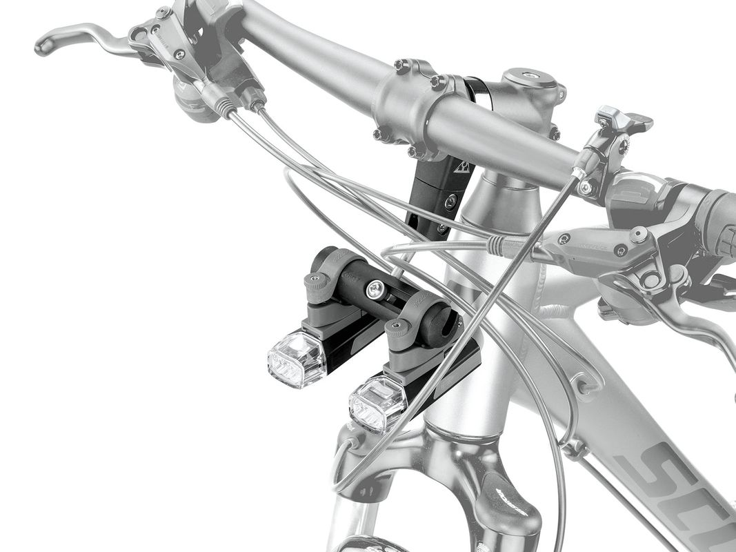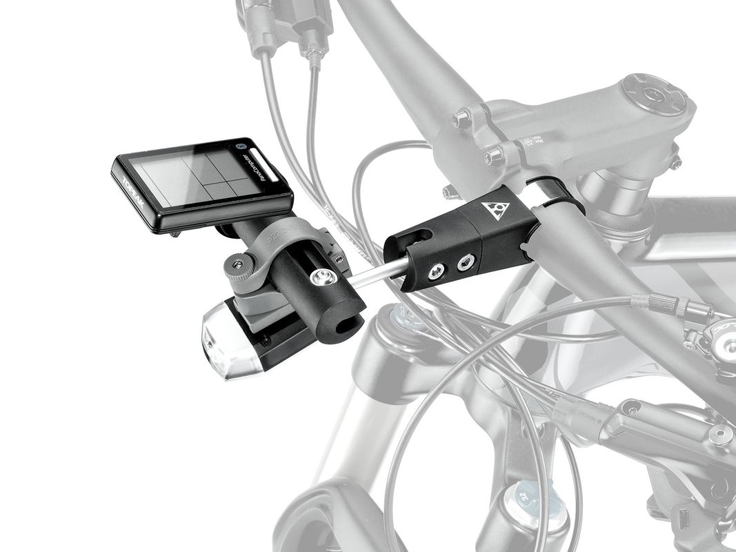 Gain more room or find the perfect position for lights, computers, music players, GPS, or whatever, with the BarXtender®. Attaches securely to the handlebars or stem and adjusts for optimum position.