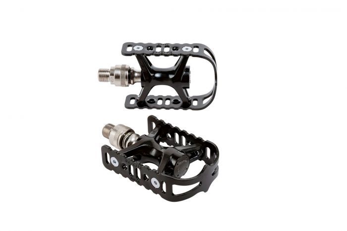 These sure-footed platform pedals offer a “twist”—just pull the collar back and slide the body out of the crank. Once removed, the remaining socket is super low profile for a minimal folded size and theft deterrence when locking your bike. The UB-LITE EZYs are double-sided so that you can always just step on and go. Manufactured in Japan by MKS.
