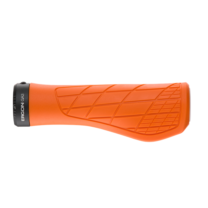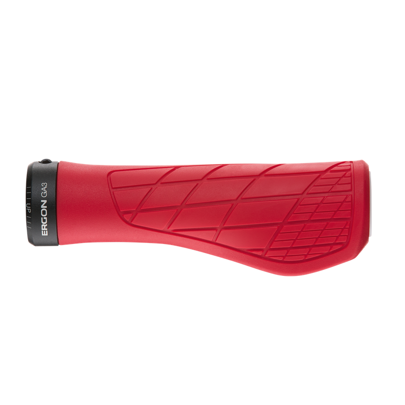In order to help you maintain perfect control over your bike, your hands should not completely envelop the grip, which is why Ergon offers many grips in two size diameters – “Small” and “Large”. The difference refers to the grip width (hand size), meaning a larger hand will have a more positive fit on a thicker grip, while a smaller hand is better fit to a smaller grip. For hand/glove sizes 6.5 to 8.5 we recommend “Small”, for 8.5 to 10.5 “Large” usually is better.