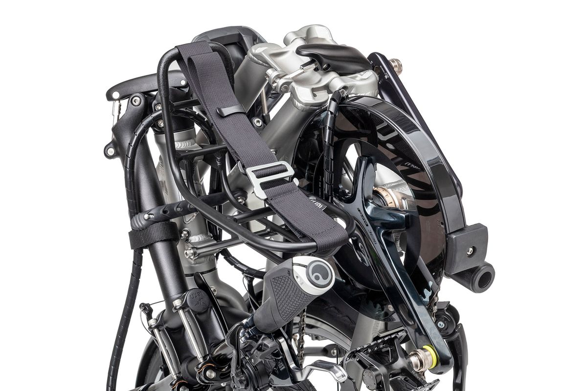 - Stays in place when riding, folding, and trolleying the bike