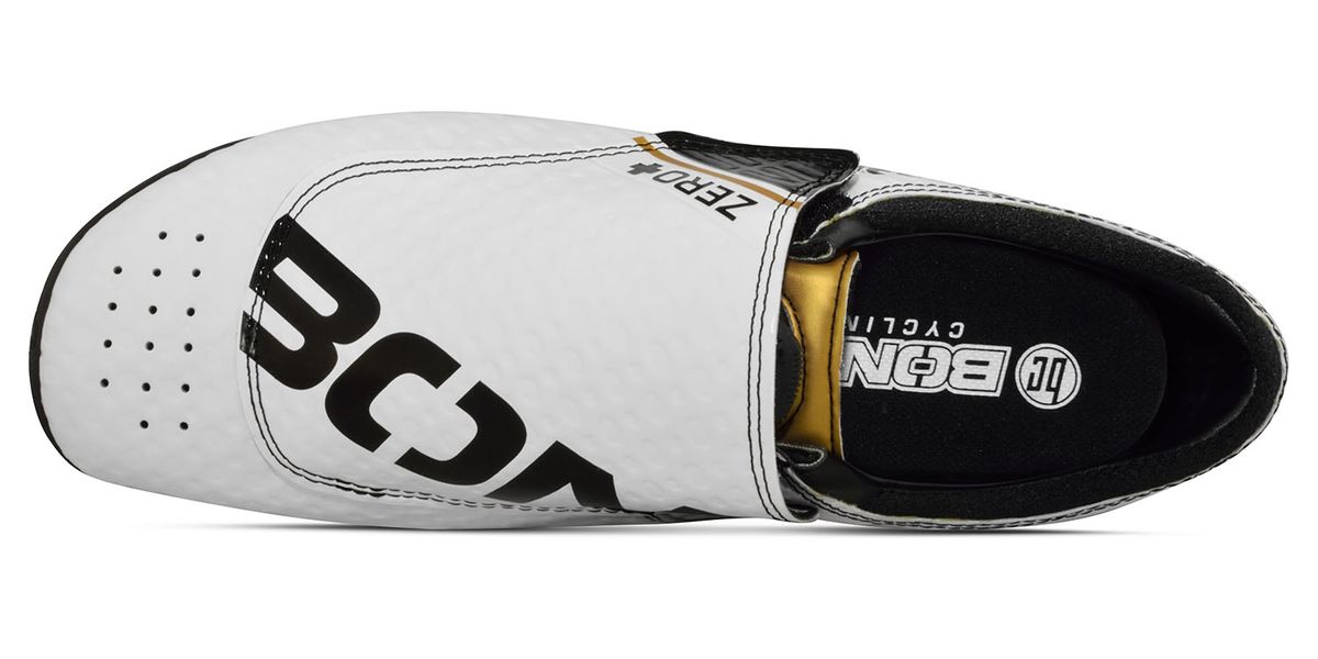 Featuring a unique aerodynamic covering and a centrally located BOA IP1 dial, the Zero+ is the perfect shoe for wind-cheating time triallists, long-distance triathletes, rouleurs and for those concerned with only left-hand banked turns.