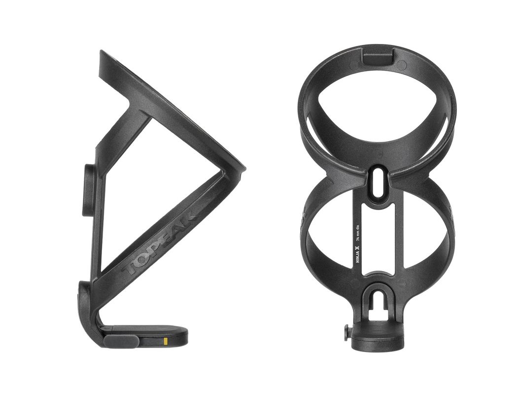 A stylish water bottle cage is compatible with Ninja cage QuickClick™ mounting system with a simple twist for the ultimate combination of accessories.