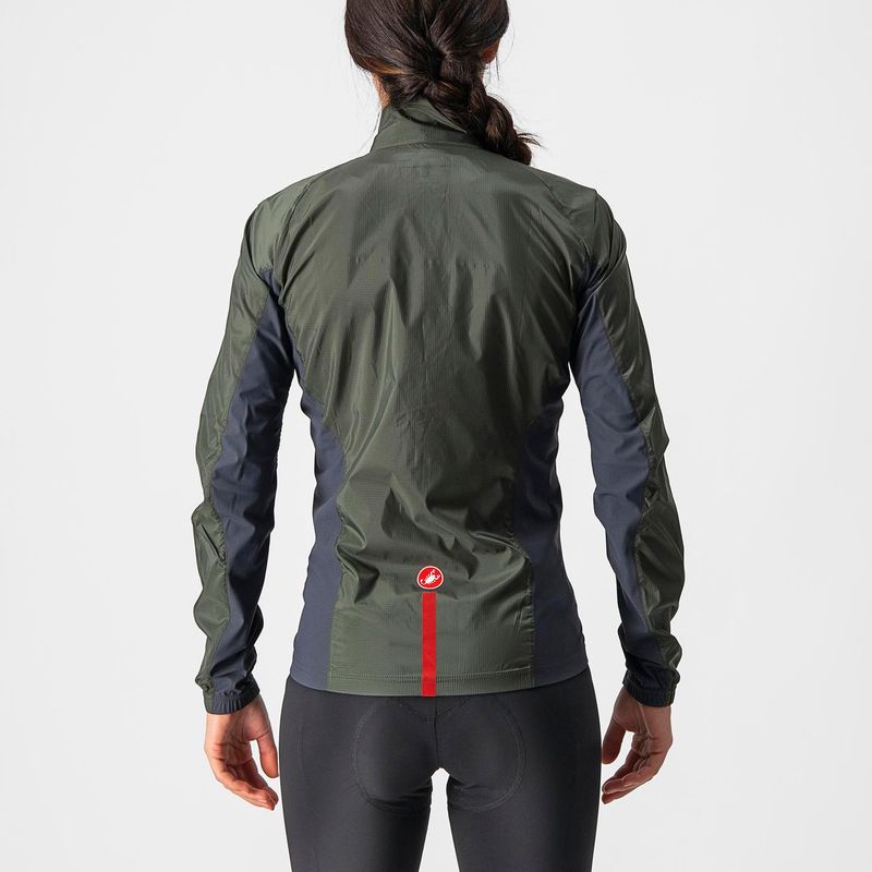 This is a modern interpretation of the wind shell jacket, the one you keep in your pocket for a long descent or put on for the first hour of the ride until the day warms up. That jacket used to be a simple affair — a nylon shell — but the lack of stretch meant that it had to be cut on the generous side to fit all body shapes, both on and off the bike. We've completely reimagined what the shell jacket should be and how it's constructed. We've added panels on the sides and the sleeves in a very high-stretch yet tightly knit fabric that allows us to give the jacket a modern, close-to-body fit for aero gains on any terrain, and it actually keeps more heat in than a jacket that's flapping about. We've kept it very compact so that it can pack away into minimal space in a jersey pocket. The stretch panels are treated for water repellency, which will help in a light mist, but this is not meant to be a true rain jacket.