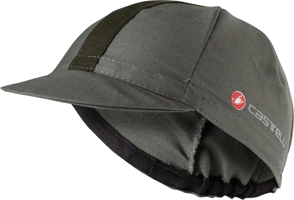 Here's your traditional cotton cycling cap done right. The fabric is piece dyed for a rich depth of color that won't degrade after a few washes. It has a center stripe as tradition dictates, but in a tasteful tone-on-tone coloring. A small scorpion and Castelli wordmark on the side show that you know your cycling heritage.