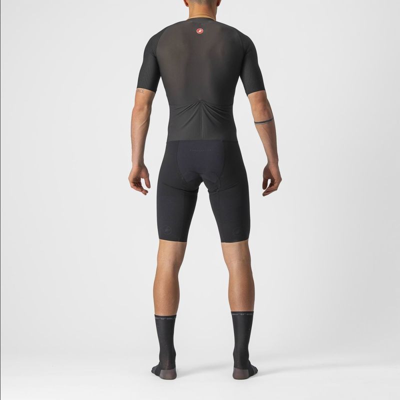 PUSHING THE LIMITS OF SPEED Military test pilots in the 1960s coined a phrase for pushing the aircraft to its limits, going all in, and risking their lives at the edge. The throttle levers with the knobs or balls at the top were pushed all the way forward against the cockpit wall: Balls to the Wall. BTW is for those days, those races where you never drop out of your 53x11 or 12, when you're sometimes in the gutter or cornering at the limit of adhesion. When you're all in, taking risks. Like the planes that inspired the phrase, the BTW Speed Suit uses cutting-edge research and construction in the pursuit of speed: CFD analysis, 3D test mannequins, fabric research and testing, numerous wind tunnel tests, and then testing in the WorldTour. At the beginning of the research project, we were set to sacrifice comfort in the name of speed, but in the end we kept fully breathable, fully stretchy fabrics. There’s a little more Lycra®, so you won’t stay quite as dry, and the shoulder fabric is slightly heavier. And it doesn’t have the Sanremo front opening, so your pee stops will be a bit more challenging. All that is a small price to pay for an incredible THREE PERCENT total aero drag savings compared to the fastest-in-class Sanremo Speed Suit. That 3 percent is at higher speeds, especially in the 45-65 kph range, when it really counts. You can get the BTW suit in your team graphics through Castelli's custom program, or this stealthy ninja black version to tear up your local Strava segments or group rides.