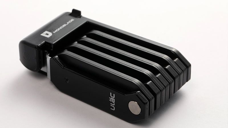 Secure, easy-to-use folding lock embedded with solid steel, beautifully engineered for the road biking enthusiast. Monoblade comes with a velcro style bracket to secure the lock anywhere on the bike.
