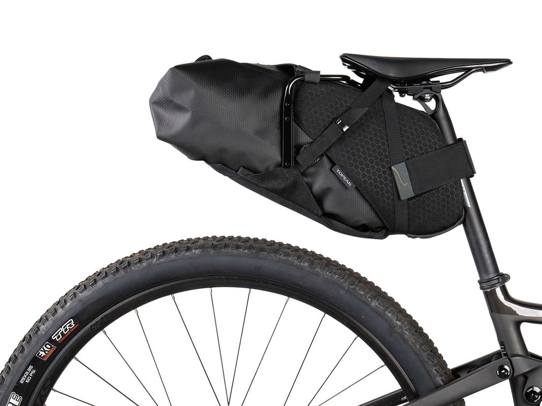 A large capacity seat bag specifically designed for bikepackers wanting a streamlined way to carry gear without the need for a rear rack. The reinforced, anti-slip/scratch fabric protects the saddle while the advanced mounting system enables convenient and secure mounting to seatpost and saddle rails. Easy access waterproof carry bag and built-in air release purge valve keeps bag compact and dry while you’re on your next adventure.