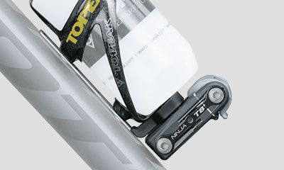Simply mounts non-adjustable water bottle cage with Ninja T Road with stealthy built-in tool case and hidden tool that’s easily accessed with a simple twist. The tool’s smooth, machined profile is comfortable in the hands and includes 2 / 2.5 / 3 / 4 / 5 / 6 mm Allen wrenches, Phillips head and T25 Torx® wrenches for precise adjustments.