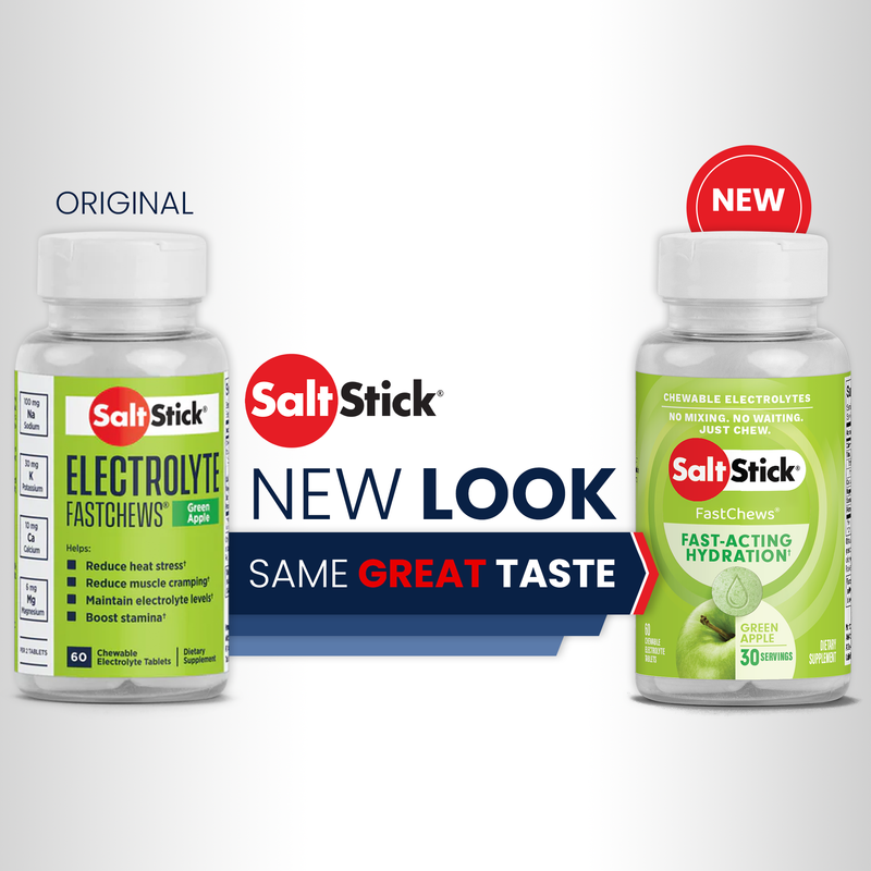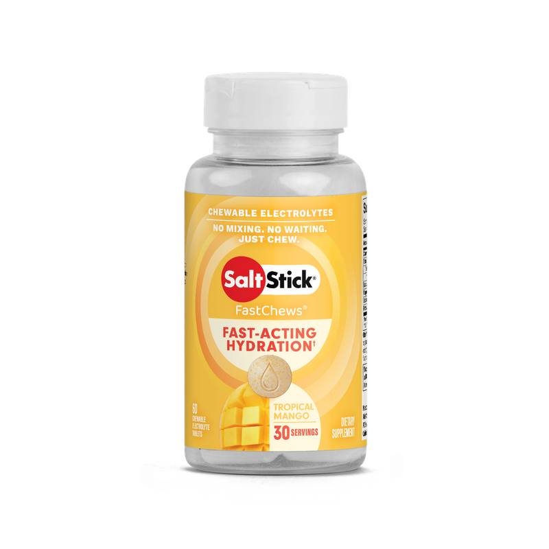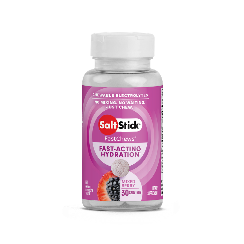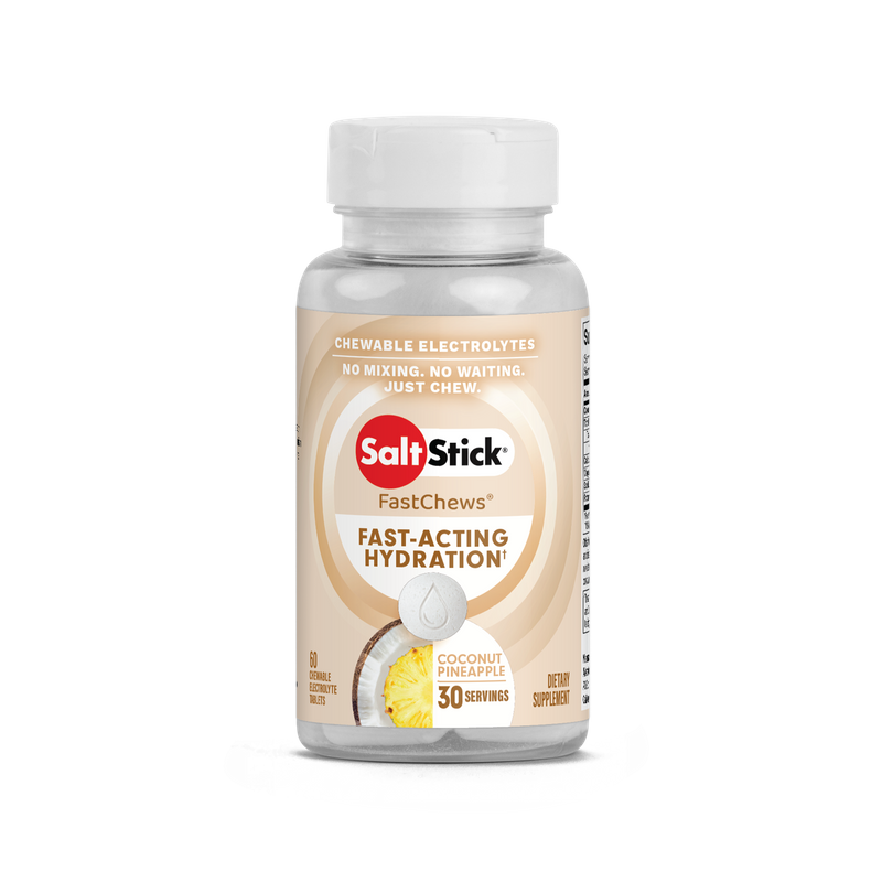 SaltStick® FastChews® are delicious, chewable tablets that provide a similar ratio of electrolytes to what your body loses through sweat. Our scientific formula relies on cleanly sourced, buffered ingredients to help minimize heat stress and muscle cramping due to dehydration, without causing stomach discomfort.
