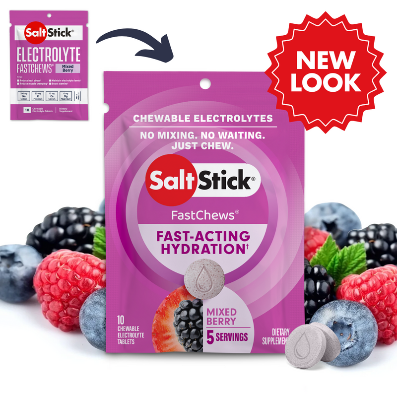 SaltStick® FastChews® are delicious, chewable tablets that provide a similar ratio of electrolytes to what your body loses through sweat. Our scientific formula relies on cleanly sourced, buffered ingredients to help minimize heat stress and muscle cramping due to dehydration, without causing stomach discomfort.