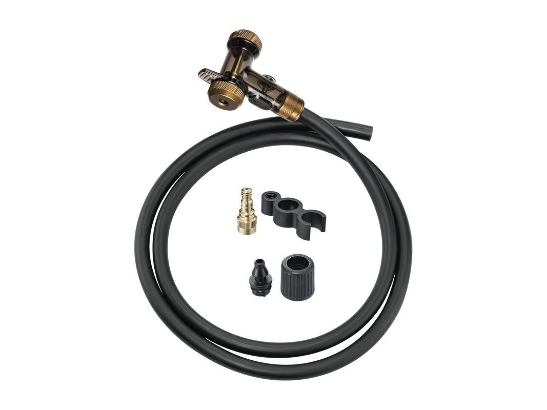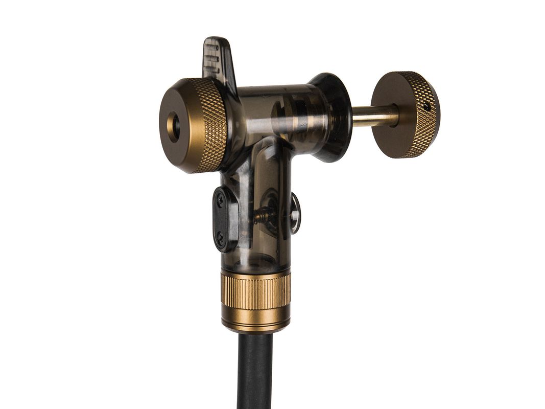 TubiHead’s transparent body allows you to see the Presta valve core being removed, and after inflation, reinstalled with no loss of pressure. With the valve core removed, larger air volume is rapidly delivered by a standard floor pump to quickly seat and inflate tubeless tires or other large volume tires.