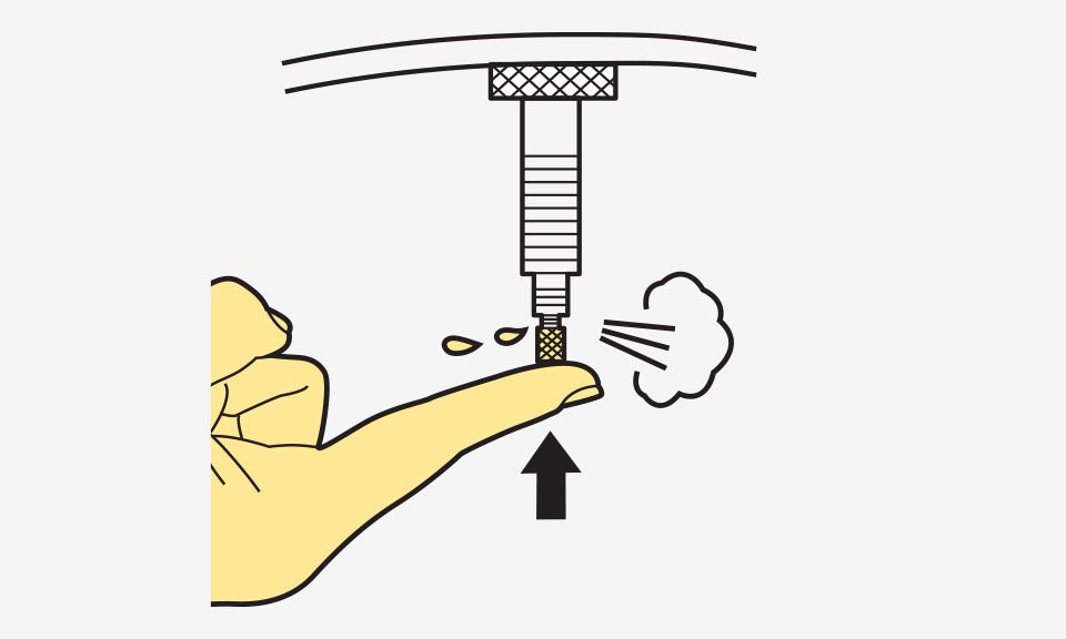 - Make sure air flows properly before engaging TUBIHEAD™.If you are using tire/tube sealant, the valve stem must be in the vertical position to prevent sealant from entering pump head and causing damage to pump.