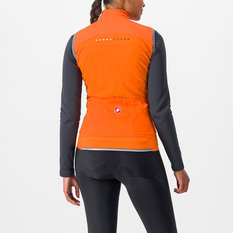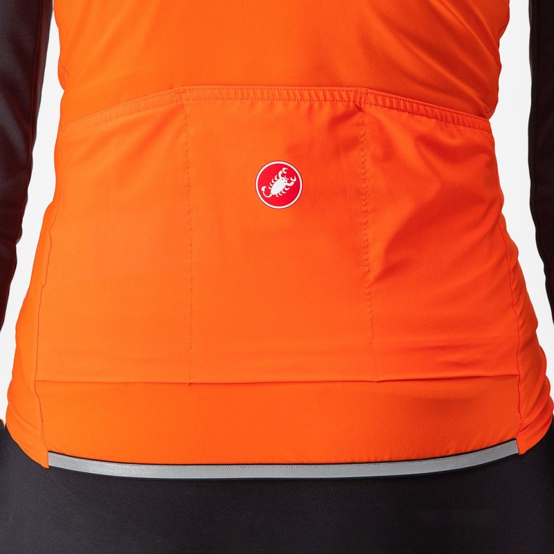 The Perfetto RoS 2 Vest is our attempt at the perfect vest. It's warm and windproof yet breathable thanks to the Castelli-exclusive GORE-TEX INFINIUM™ WINDSTOPPER® fabric on the front and the membrane-free Nano Flex stretch woven back fabric. It's splash resistant for wet roads or changing conditions. It's light and packable, easily fitting in a jersey pocket with room to spare. It has three rear pockets of its own and a two-way YKK® Vislon® zipper you can open from the bottom to access gear in your jersey pockets. It has 360° reflectivity thanks to the reflective trim on the armholes and reflective band below the pockets. It fits close to body with a high collar that feels oh-so-comfy for cooler conditions.