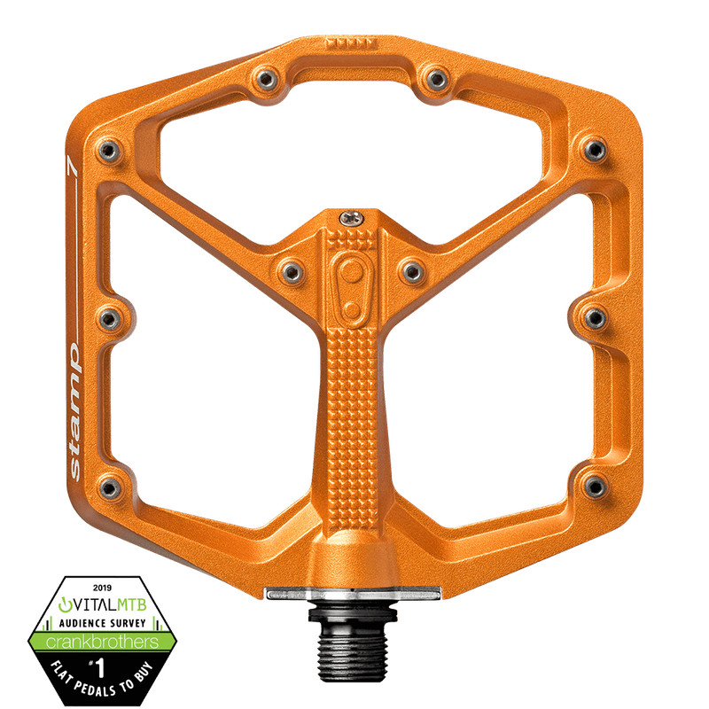 Size specific pro-level concave platform pedal provides optimal shoe/pedal interface.