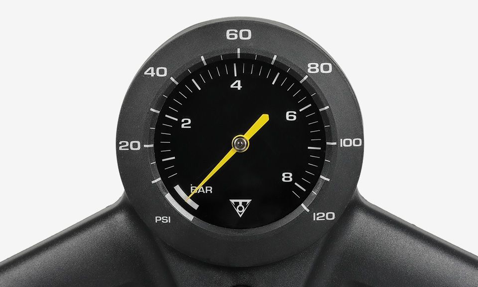 A versatile floor pump specifically designed to inflate a wide range of tires featuring a large 3.5" easy-to-read base-mounted analog gauge for measuring tire pressure accurately. The larger steel barrel delivers more air per stroke for quick and easy inflation up to 120 psi / 8 bar. Equipped SmartHead® pump head automatically adjusts to fit either Presta or Schrader valves and is one of the best value floor pumps on the market.