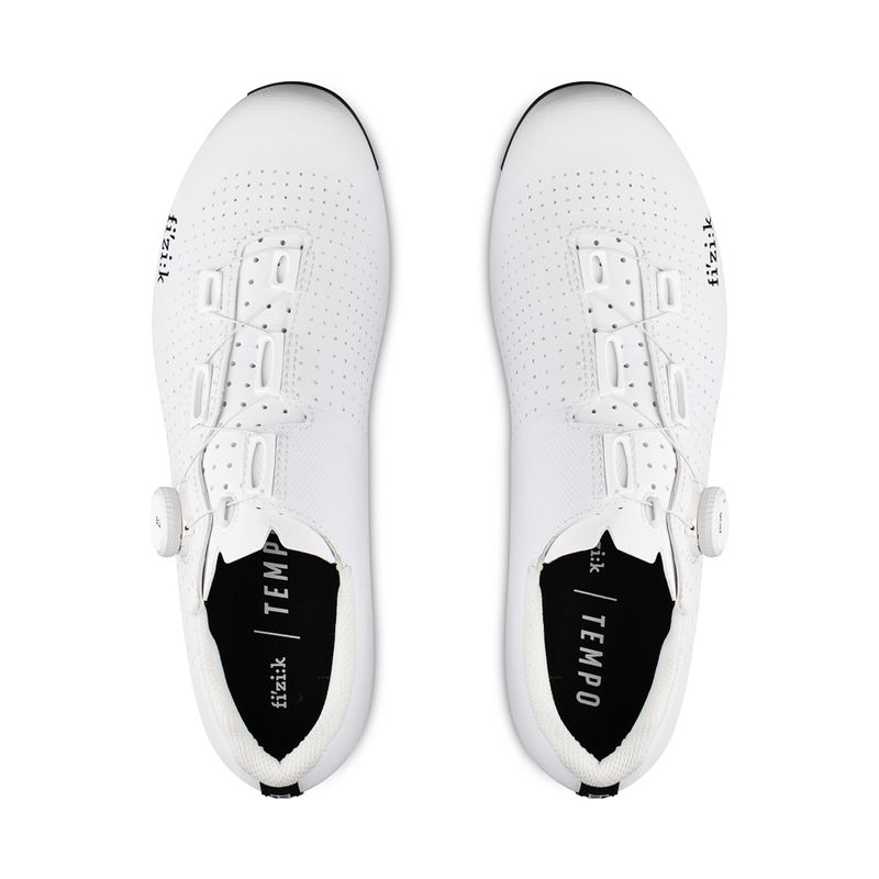 At the base, the R2 outsole’s engineered carbon fibre layup saves weight and delivers increased stiffness, with a stiffness index rating of 10, making this outsole the most responsive in the fizik range. A wide vent inlet and deep internal channelling provide cooling airflow, aiding in temperature regulation. The cleat positioning is set slightly further back compared to traditional settings to optimise pedalling efficiency and reduce knee compression—especially well-suited for very aggressive, forward aero positions.