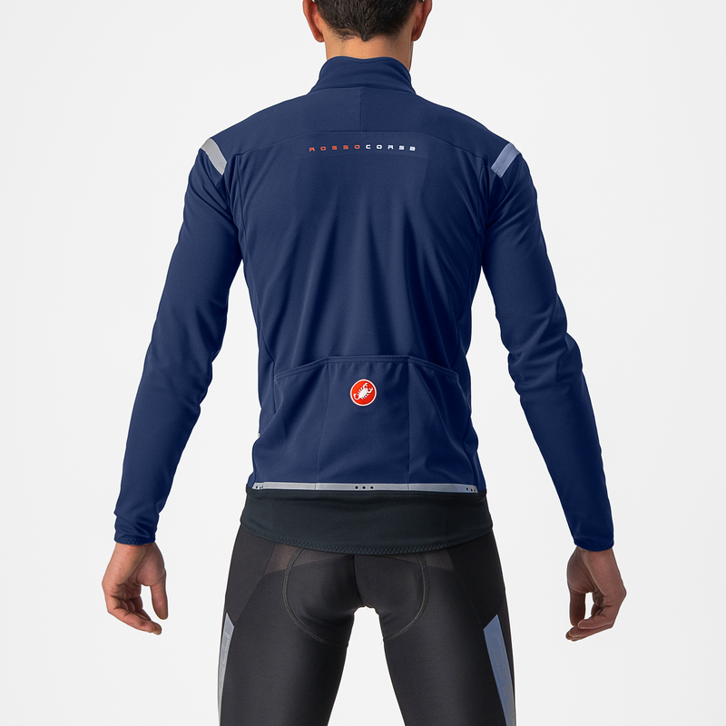 The Perfetto RoS 2 is the one jacket that does everything well. If you look carefully, the Perfetto RoS 2 Jacket is essentially a long-sleeve version of the Gabba RoS 2. So it's just a warmer Gabba? Not really. The full sleeves fully turn it into a jacket, but one that covers a wide range of conditions. Like the Gabba, the RoS insignia signifies that it excels in dry conditions thanks to the high breathability, as well as in wet conditions thanks to the Castelli-exclusive GORE-TEX INFINIUM™ WINDSTOPPER® fabrics. There's a light fleece-lined water-resistant version on the forward-facing surfaces and a lighter and stretchier fabric on the back that maximizes the breathability while providing excellent water repellency. The Perfetto RoS 2 Jacket keeps all the cold wind out while being much more breathable than the typical polyurethane membranes used on most jackets that try to compete with the Perfetto. When you stay drier, you don't need as many layers underneath. The beauty of this jacket is that it doesn't have any insulation on its own, so a thin base layer is just right for mild conditions, while adding an insulating layer (a thermal jersey or Castelli's Alpha 2nd Layer) will take you to cold temperatures. You decide. The "2" part of the name refers to the updates to the latest version, including a YKK® Vislon® zipper with both top and bottom openings for more adjustable ventilation. The reflectivity on the back is more visible, the seam at the top of the shoulder has been moved to the back, and the three pockets hold more gear. While the Perfetto remains decidedly a performance fit, the new model has a touch more room through the chest, shoulder, and biceps. This is the one jacket that belongs in every cyclist's quiver.