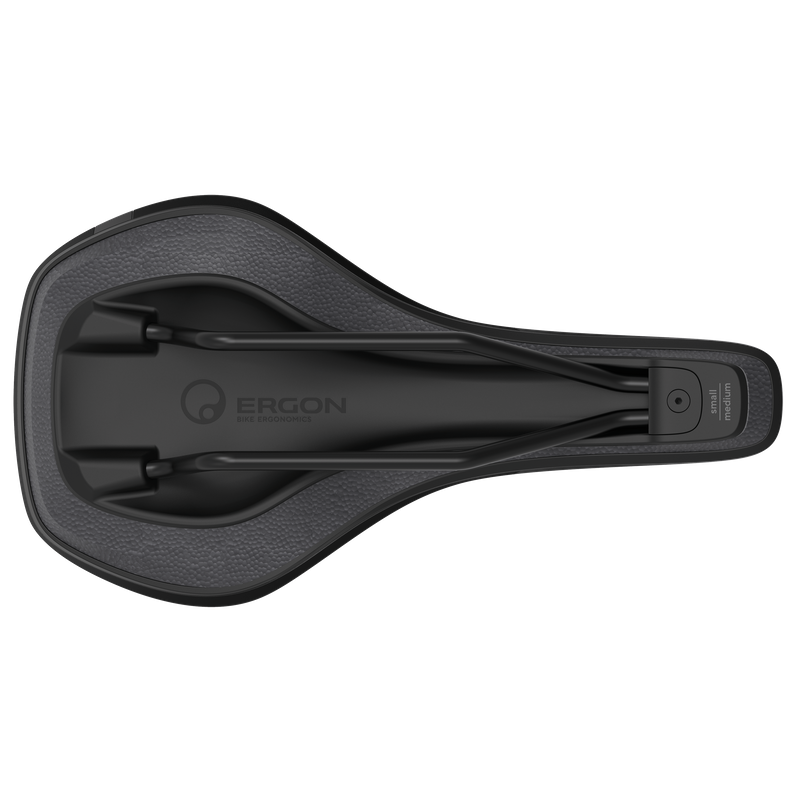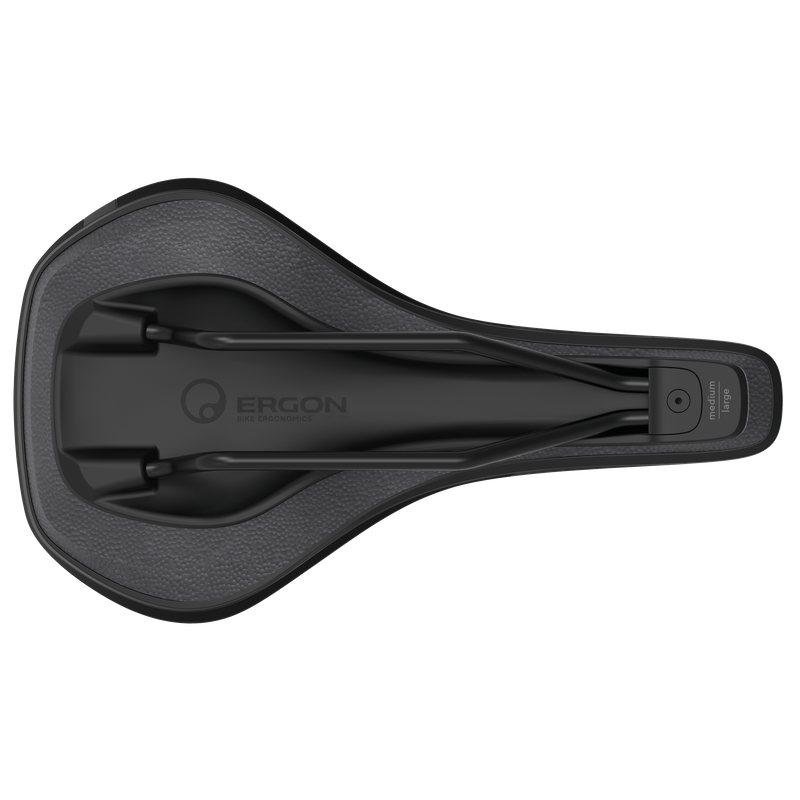 The view below of the SMC Core shows the entire saddle surface – the high-performance elastomer damper decouples the two saddle shells from each other. This sandwich construction with elastic core allows the saddle to follow the natural pedaling movements more ergonomically in all three directions. Unevenness of the riding surface and vibrations are efficiently filtered out thanks to Ergon CORE 3D®.