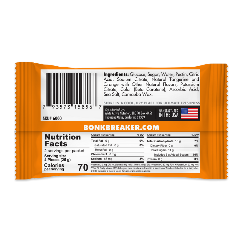 Talk Nerdy To Me: Bonk Breaker Energy Chews are a delightful fusion of flavour and nutrition. Packed with over 100% of your daily recommended vitamin C and a generous 170mg of electrolytes per packet, these chews are a smart choice for energy replenishment during workouts or as a tasty snack. Whether you're an athlete seeking a performance boost or someone with specific dietary restrictions, Bonk Breaker Energy Chews offer a scrumptious, health-conscious option to satisfy cravings while providing bonk-breaking energy.