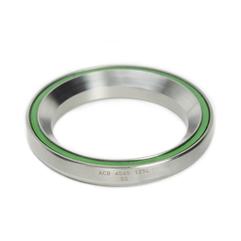 Angular-contact headset bearing featuring 440C stainless steel balls and races for superior corrosion protection.