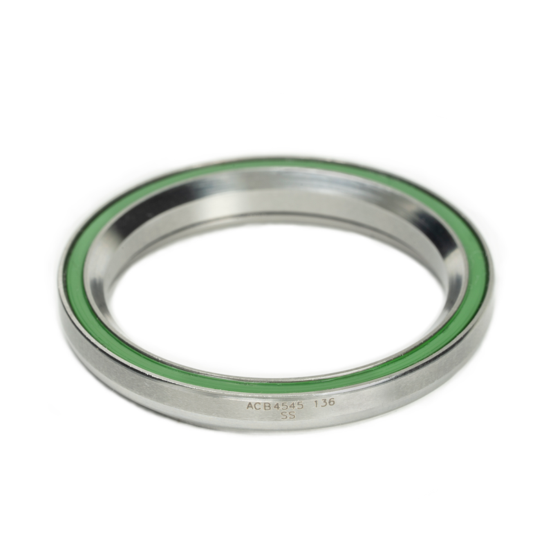 Angular-contact headset bearing featuring 440C stainless steel balls and races for superior corrosion protection.