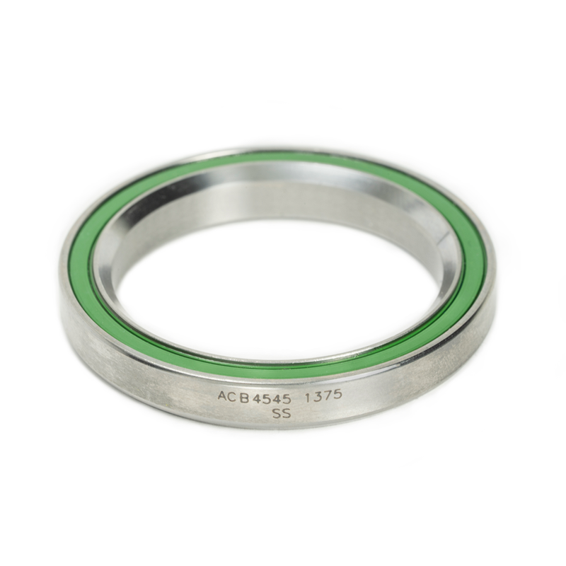 Angular-contact headset bearing featuring 440C stainless steel balls and races for superior corrosion protection.