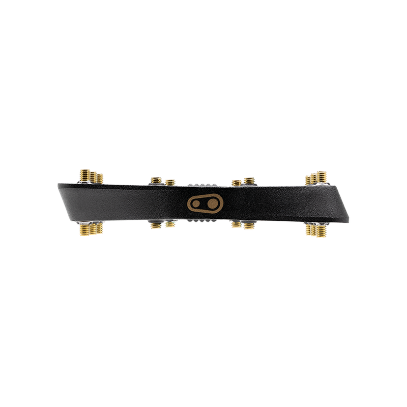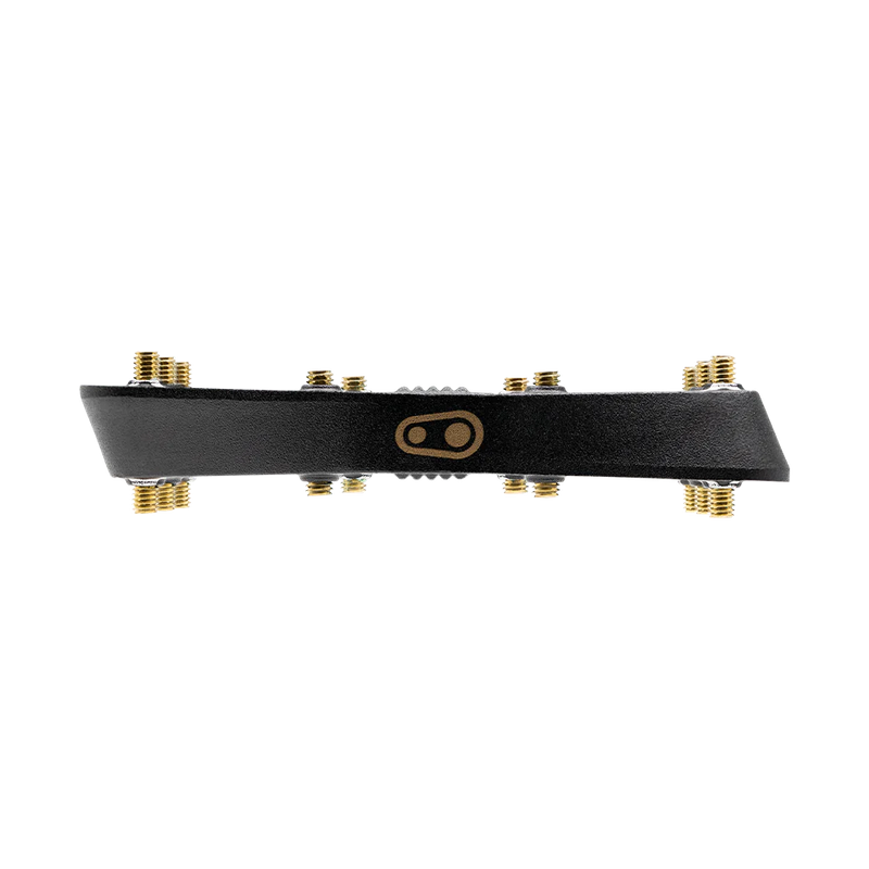 Size specific pro-level concave platform pedal provides optimal shoe/pedal interface.