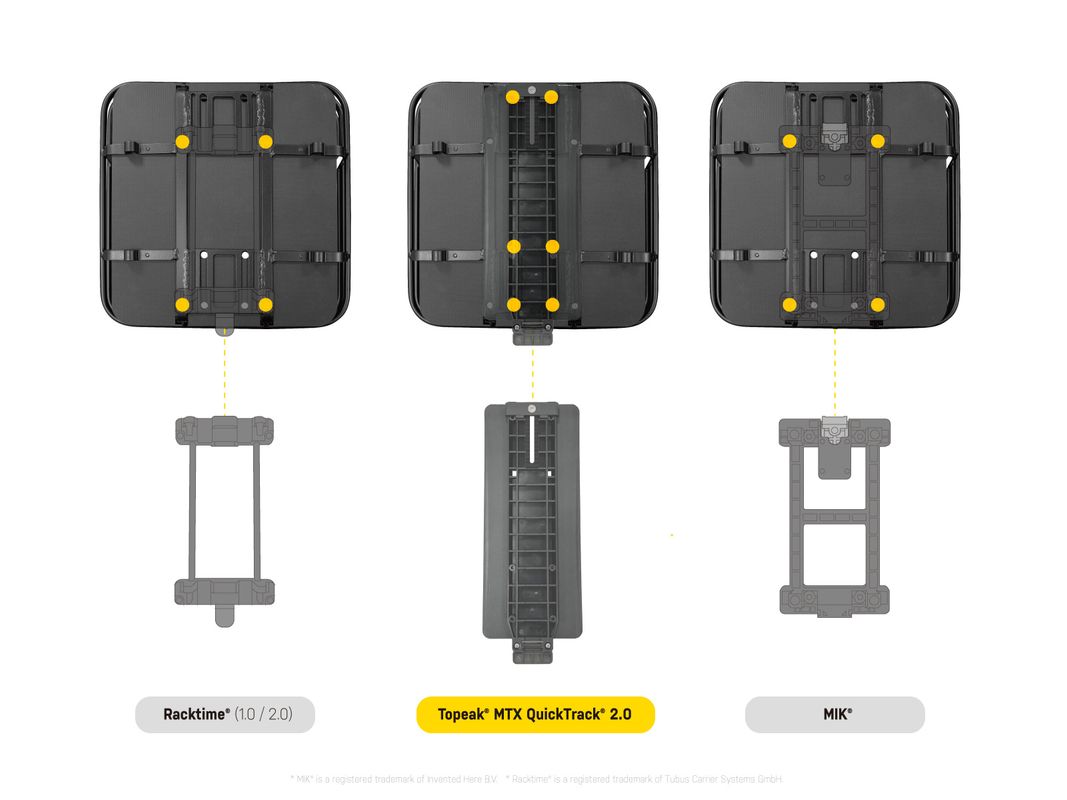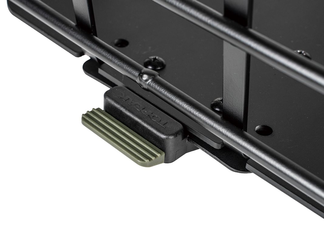 A minimalist design aluminum basket is compatible with the Topeak® MTX QuickTrack® 2.0 quick-release system, as well as the MIK® and Racktime® series rack bases.