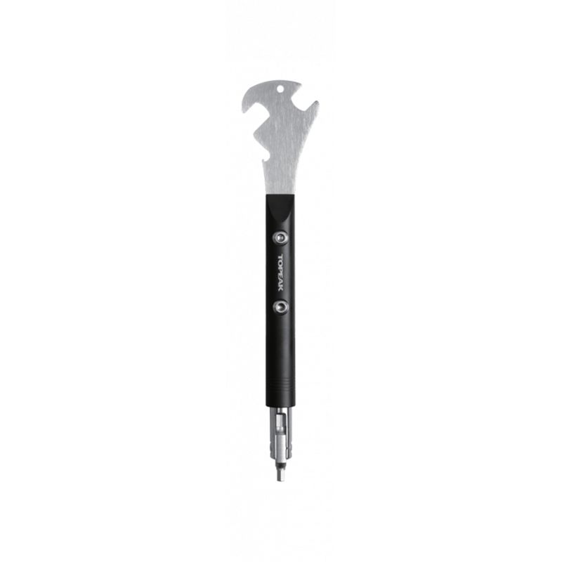 The Topeak Pedal Bar Pro is a multifunctional pedal wrench that includes 6mm and 8mm hex wrenches, a 15mm open-end wrench, and a handy bottle opener. It's a versatile tool for pedal maintenance and also doubles as a convenient bottle opener for post-ride refreshments.