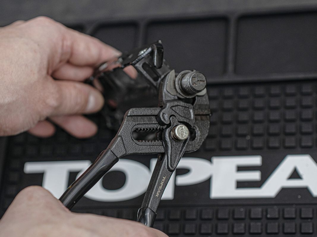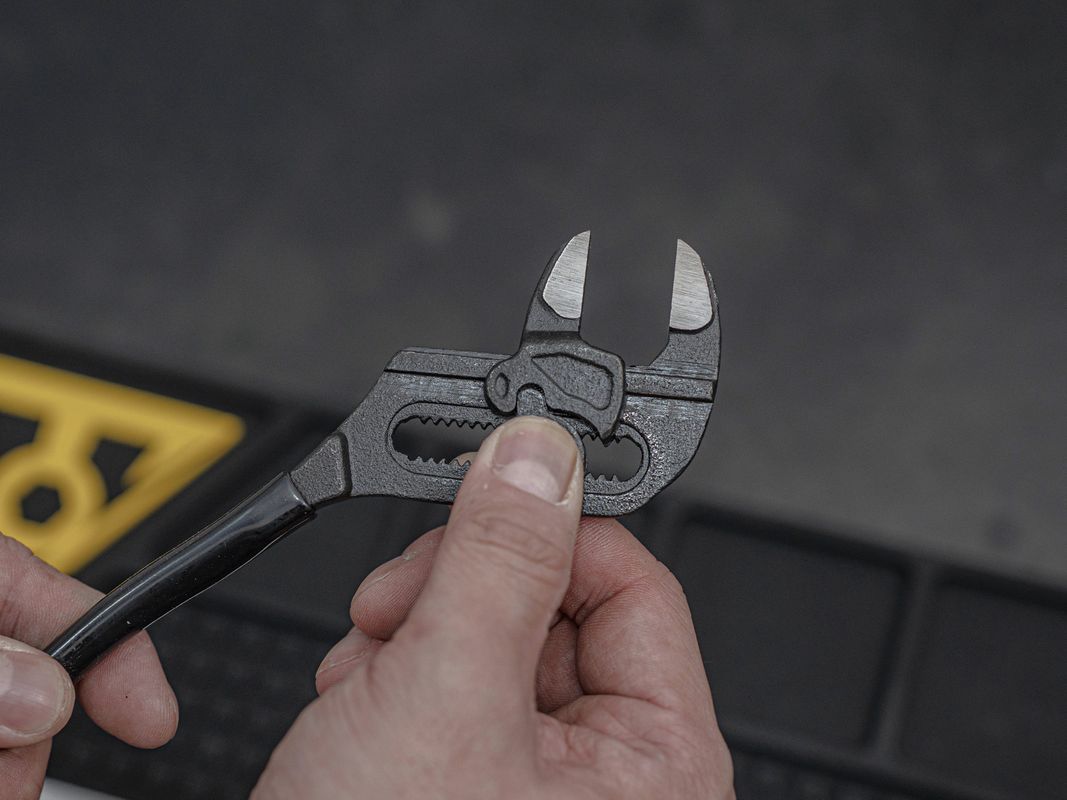 Durable Cr-Mo steel construction with smooth jaws to protect surfaces and a quick-adjust button for effortless jaw size adjustment.