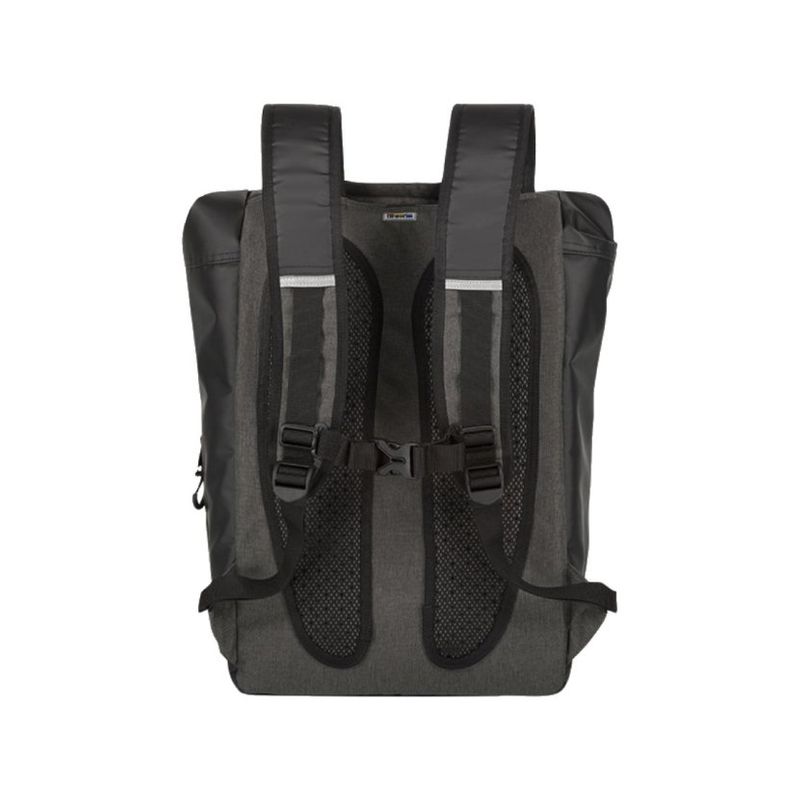 | Details | Large central compartment with integrated computer case Easy roll top closure system Waterproof tarpaulin material for improved protection and resistance Front and side storage pockets Retractable helmet holder Ergonomic foam shoulder straps and back Volume: 23.4 L |