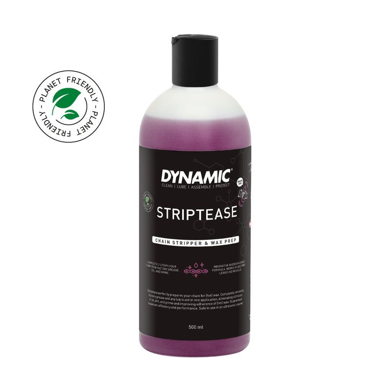Dynamic Striptease ensures your chain is perfectly prepped for any wax, especially hot wax. Its biodegradable formula removes all factory grease, oil, dirt and old wax, leaving the chain clean and ready for optimal lubrication.