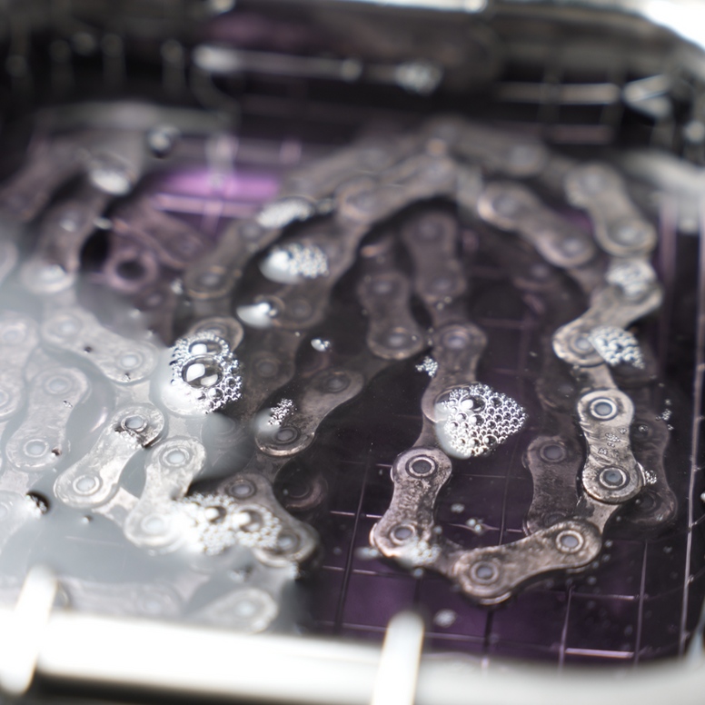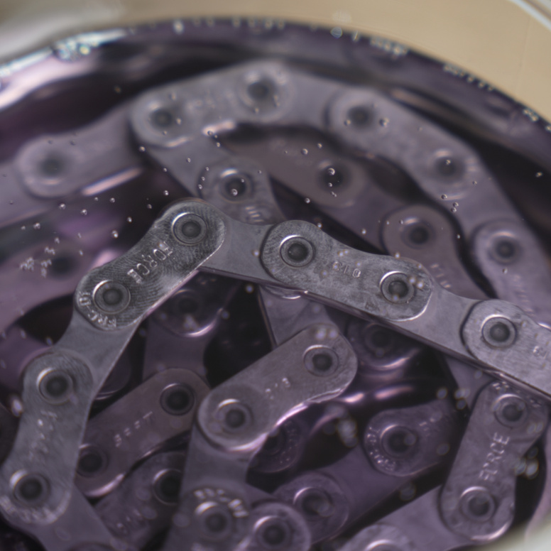 Striptease dissolves contaminants on contact-no harsh scrubbing needed. It starts working in seconds and can clean a full chain in minutes. You can use it in an ultrasonic cleaner for even deeper cleaning.