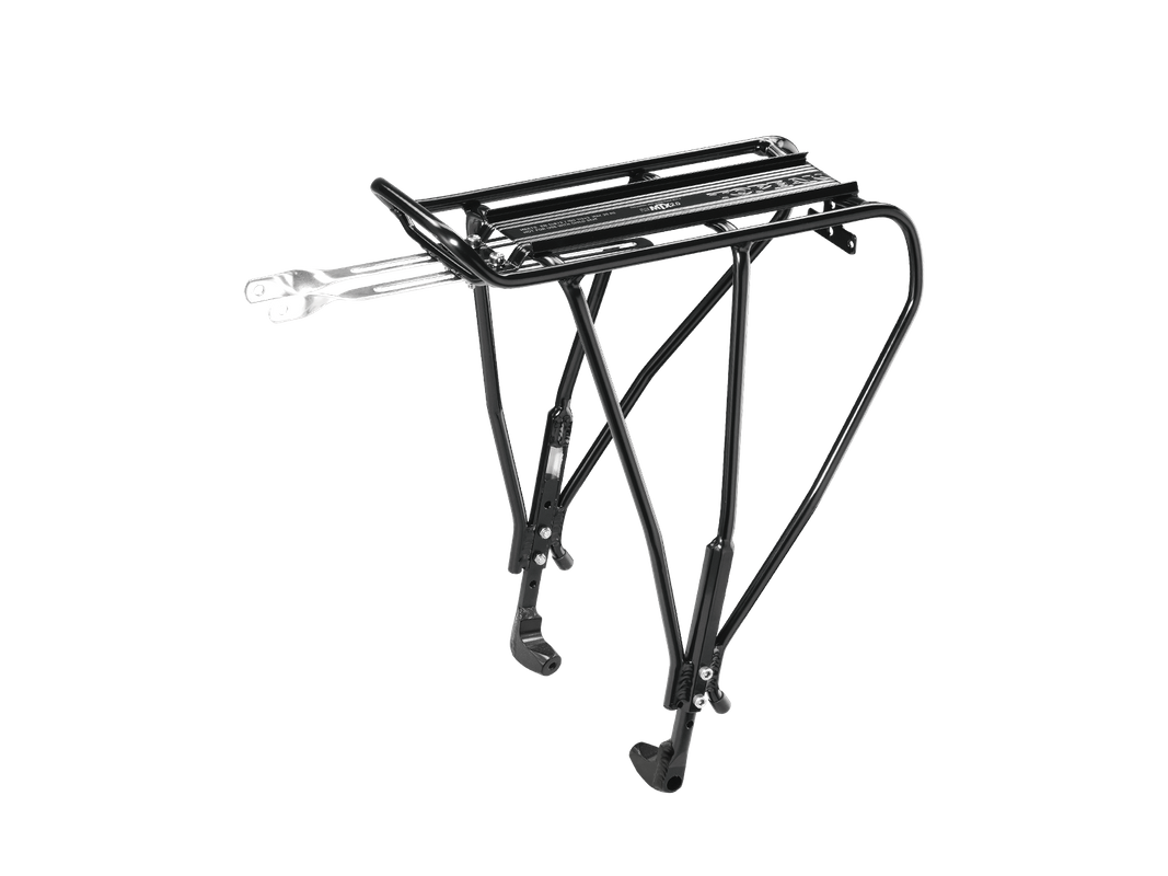 For 24”-29” & 700C Wheels w/ Disc Brakes This one-size-fits-all aluminum tubular rear rack is equipped with adjustable legs to fit most 24” to 29” wheel MTB and 700C touring bikes with disc brakes. This tough tubular rack is perfect for touring, commuting, or running errands in town. The MTX QuickTrack® plate is compatible with any Topeak MTX TrunkBag, MTX rear basket, and most other rack packs and panniers on the market.