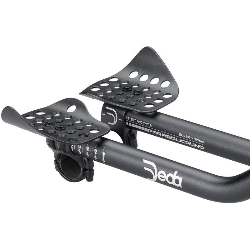 Parabolica Uno is the best and light solution to make a road bicycle the perfect weapon for time trial and triathlon races. The product consists of three key components only, J-bend extensions that is made of 6061 aluminium, the forged alloy clamp to fix it to the handlebar and the armrest with self-adhesive velcro pad. A special spacers kit allows to increase up to 55mm the armrest height for a more comfortable position and several possibilities of adjustment. Parabolica Uno is available for 31.7 mm diameter handlebar as well as for 35.0 diameter. The spacer kit is available (and included) only for the 31,7mm handlebar version.
