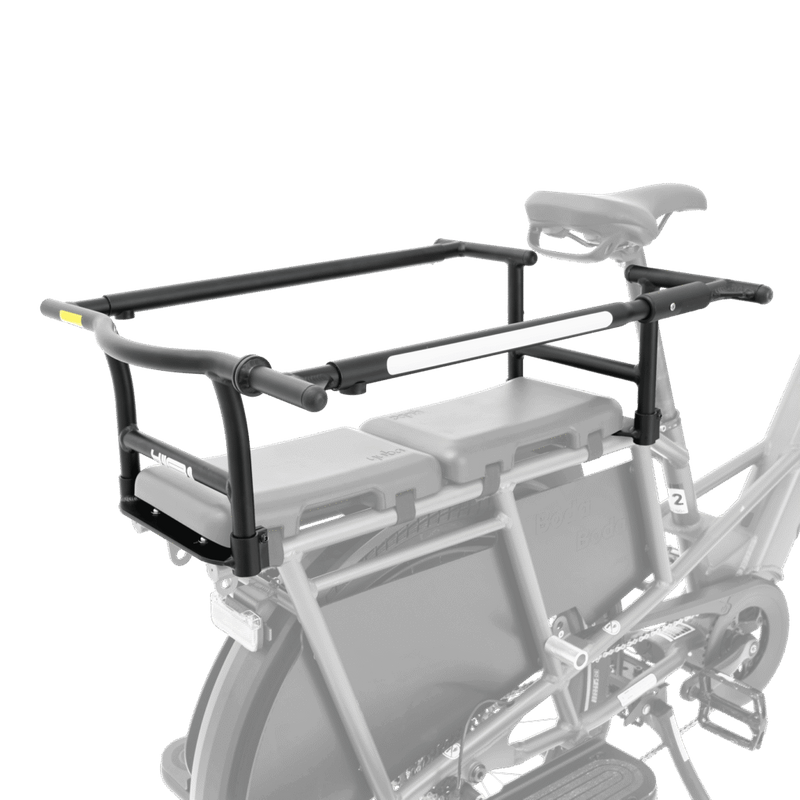 EZ Monkey Bars are a game-changer for carrying passengers on your cargo bike. This robust aluminium structure makes boarding effortless thanks to an innovative vertical opening system, while ensuring maximum safety for your children. A true innovation that simplifies family logistics every single day!