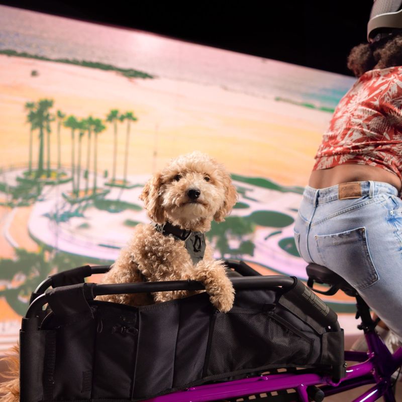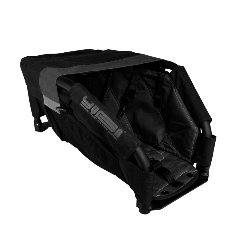 Much safer and more comfortable for your dog than a basket or box on the front of the bike, the WoofTop is the first accessory designed entirely around the needs of transporting dogs on cargo bikes. Adaptable according to size, the WoofTop offers 2 lengths for small & big!
