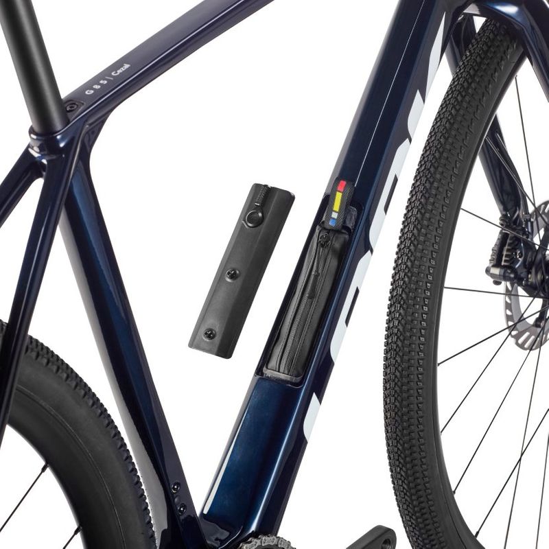 The G85 Cezal integrates a downtube storage compartment with a waterproof pouch for your essentials - a clean, and fully integrated solution that keeps everything secure and iwthin reach on every ride.